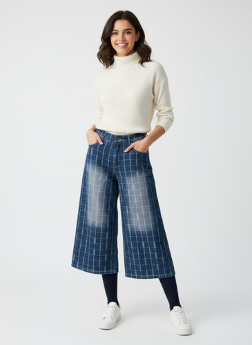 شلوار واید لگ بگ قد 85 کتان جین گرماژ پایین مناسب فصل