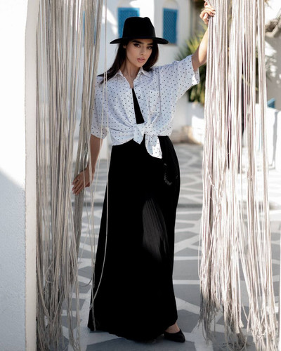 ناموجود شومیز جلو گره آستین چین گازوئیلی