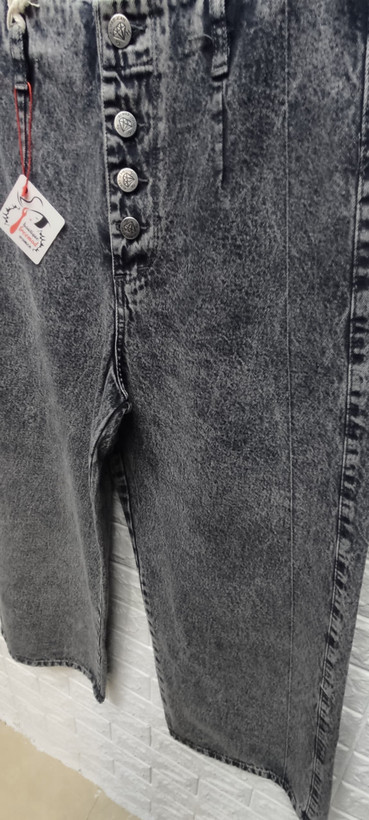 شلوار واید لگ بگ قد 85 کتان جین گرماژ پایین مناسب فصل